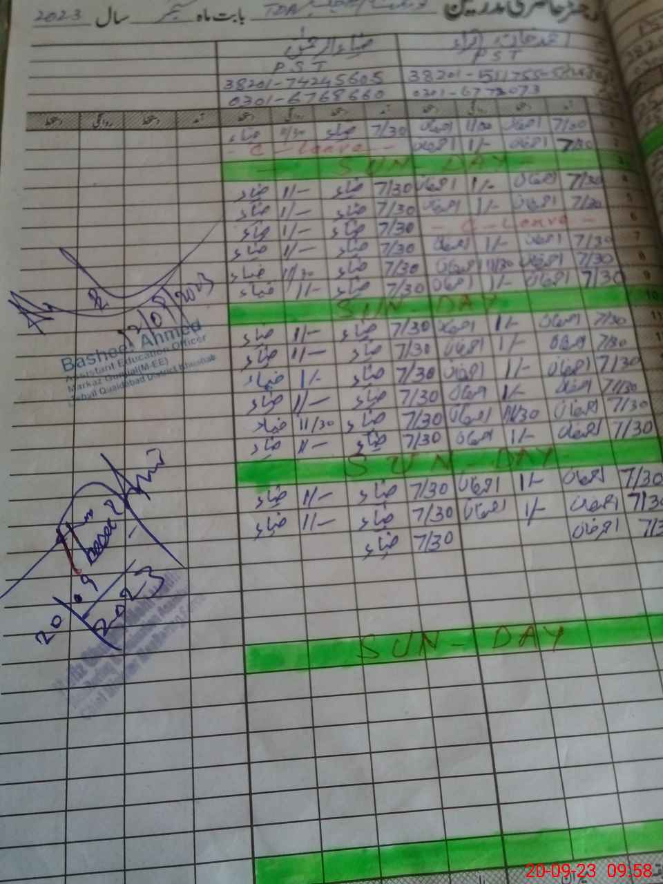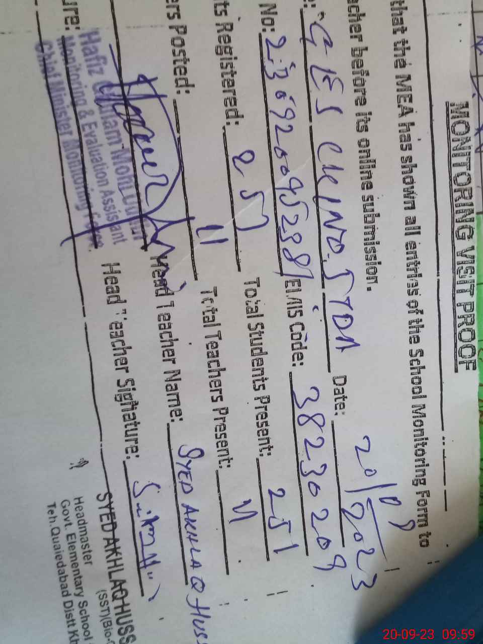 | Name: Ak**** Hu**** Designation: (School Headmaster's/Headmistress's) SST Phone/Cell Number: 03**** |