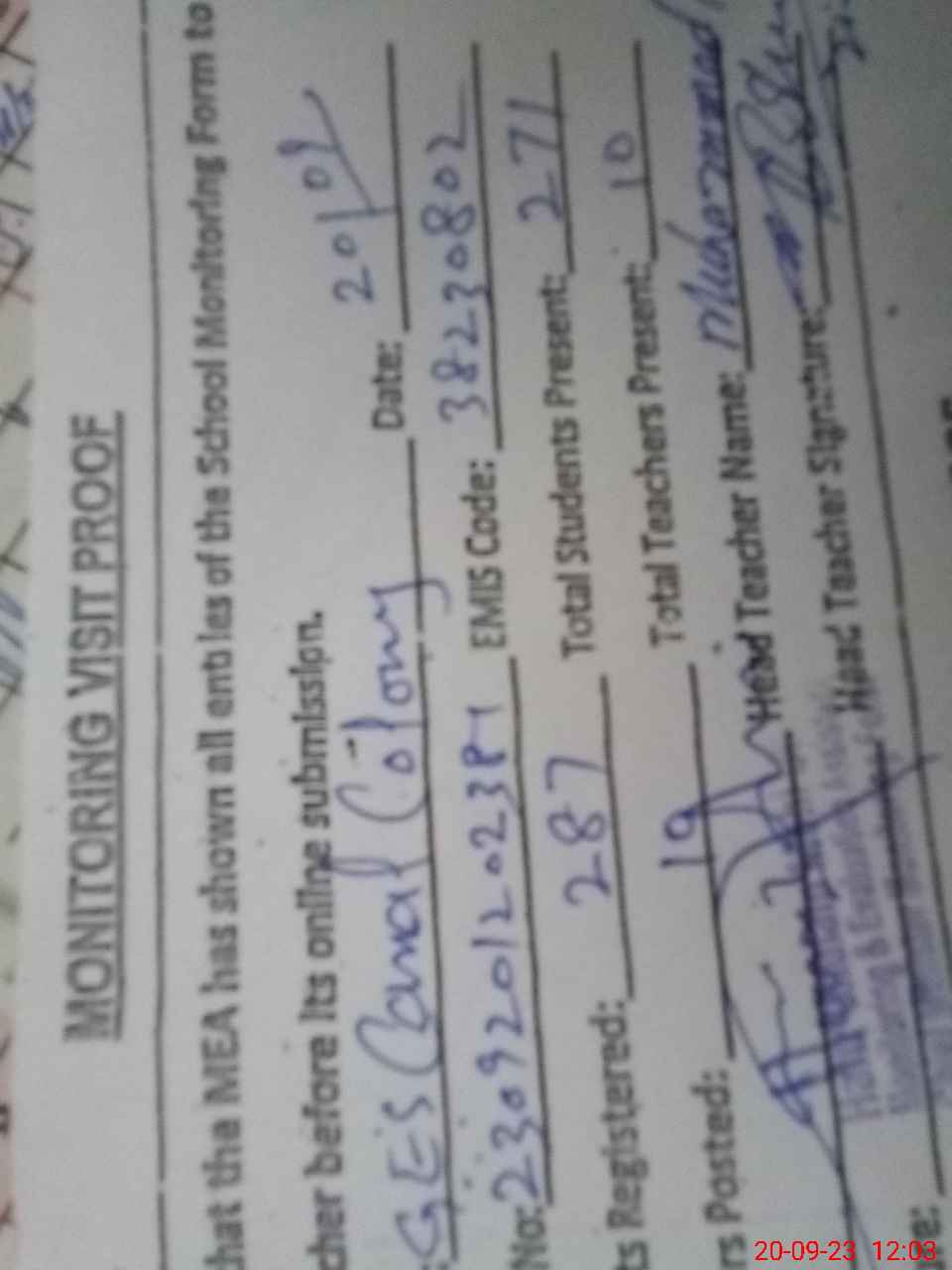 | EMIS Code: 38230802 | Name of School: GES CANAL COLONY GUNJIAL | |||