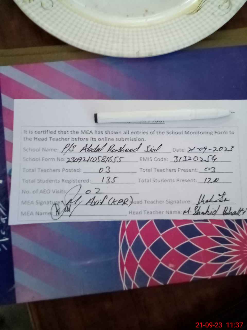 | Attendance Register | Head Teacher | MEA with School | Visit Proof |