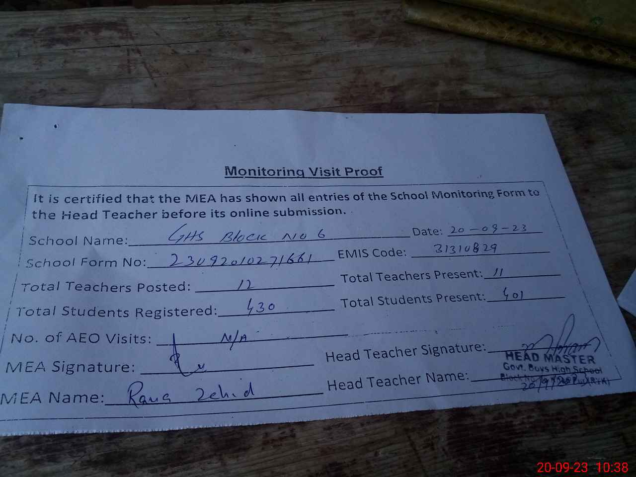 | EMIS Code: 31310829 | Name of School: GHS BLOCK NO. 6 KHANPUR | |||