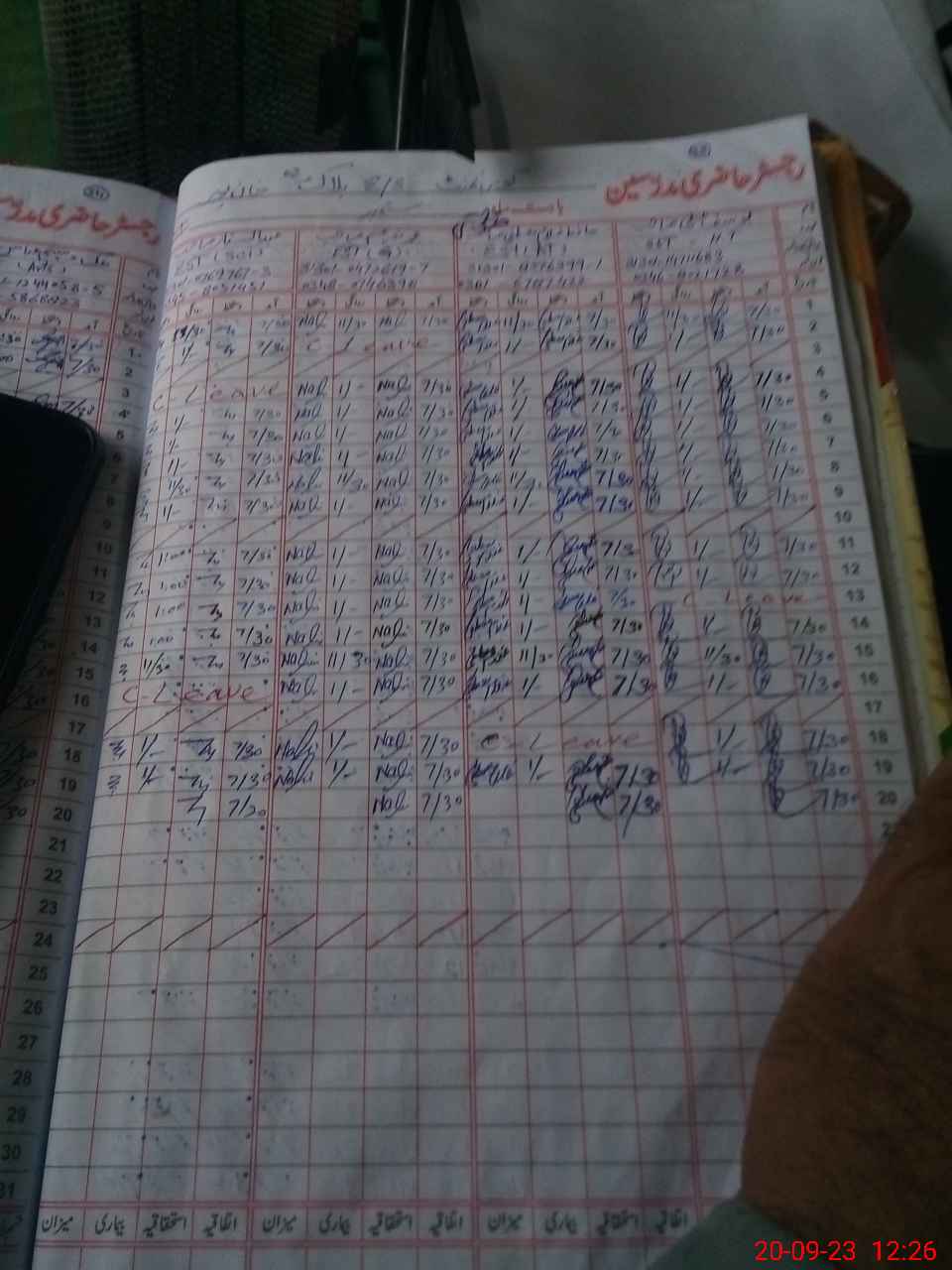 | CNIC | Full Name | Designation | R/C | Absence during last cal. month |
