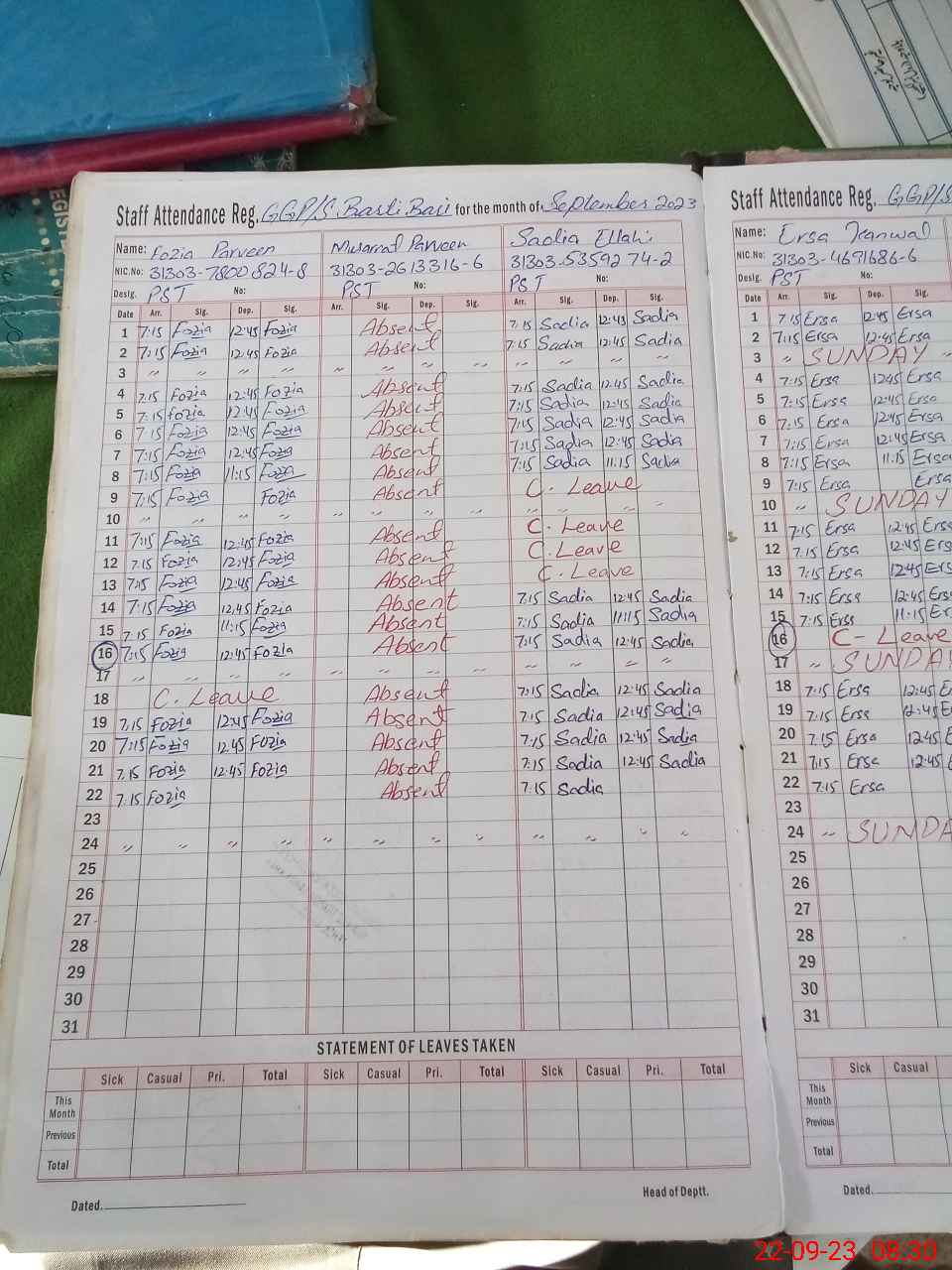| 31**** | Mu**** Pa**** | 1 | 1 | 0 | 0 | 0 | 0 | 0 | 0 | 0 | 0 | 0 | Absent (Un-Authorized) |