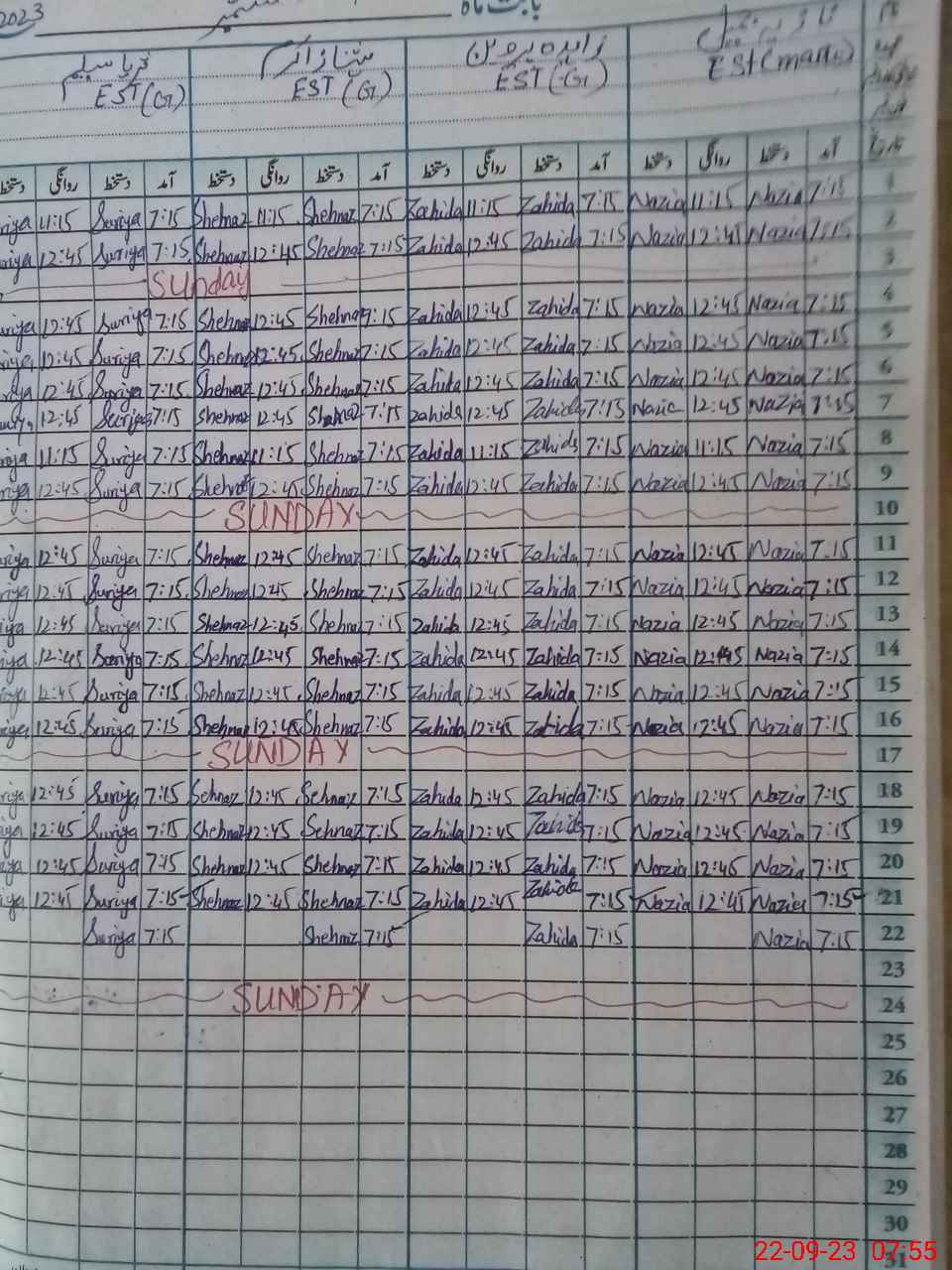 | CNIC | Full Name | Designation | R/C | Absence During Last Calender Month |