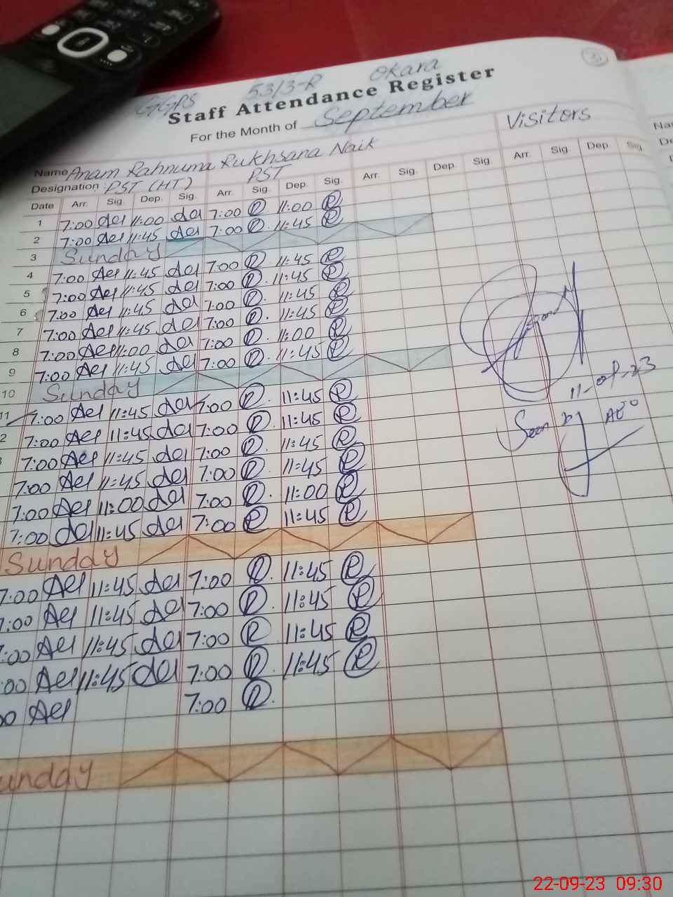 | Name: An**** Ra**** Designation: (School Headmaster's/Headmistress's) PST Phone/Cell Number: 03**** |