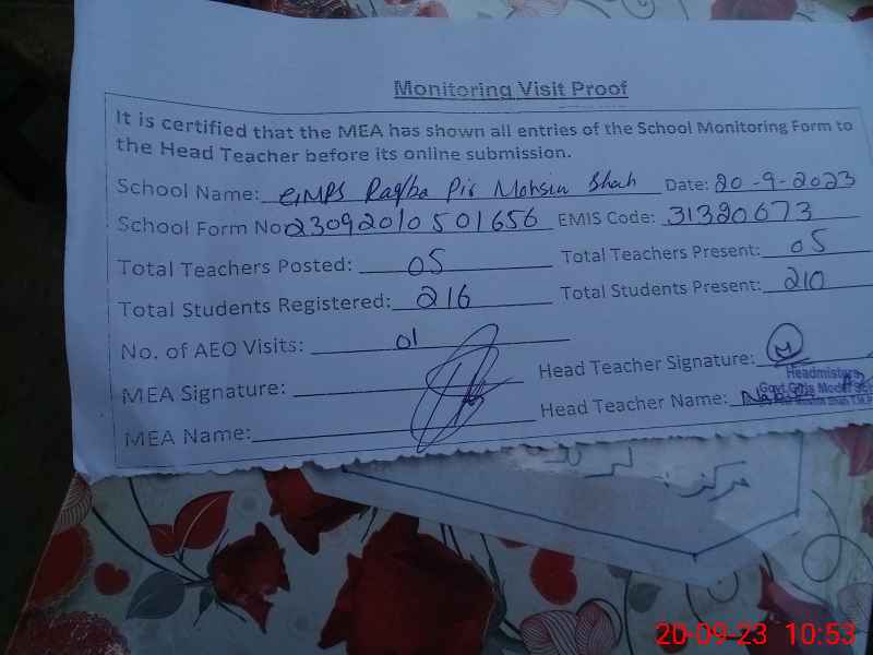 | EMIS Code: 31320673 | Name of School: GMPS RAQBA PIR MOHSIN SHAH | |||