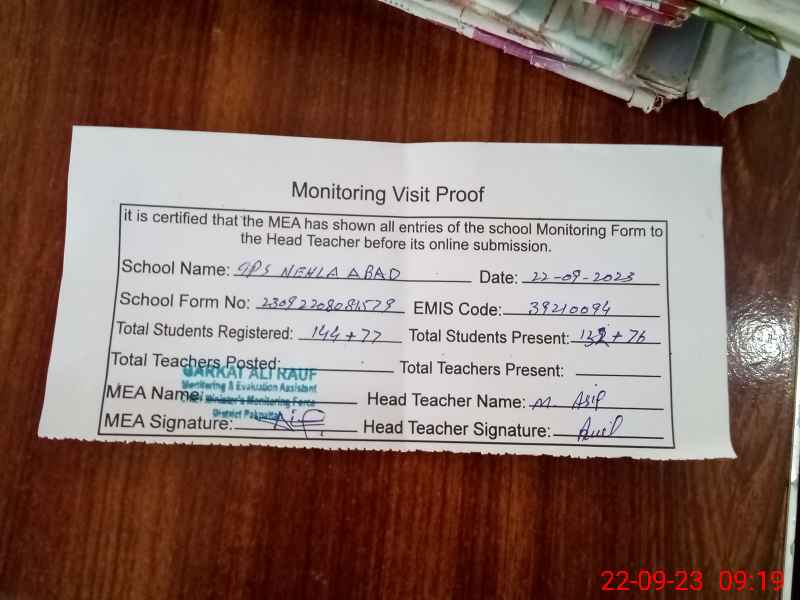 | EMIS Code: 39210094 | Name of School: GPS NEHLA ABAD P/O DHUPAI | |||