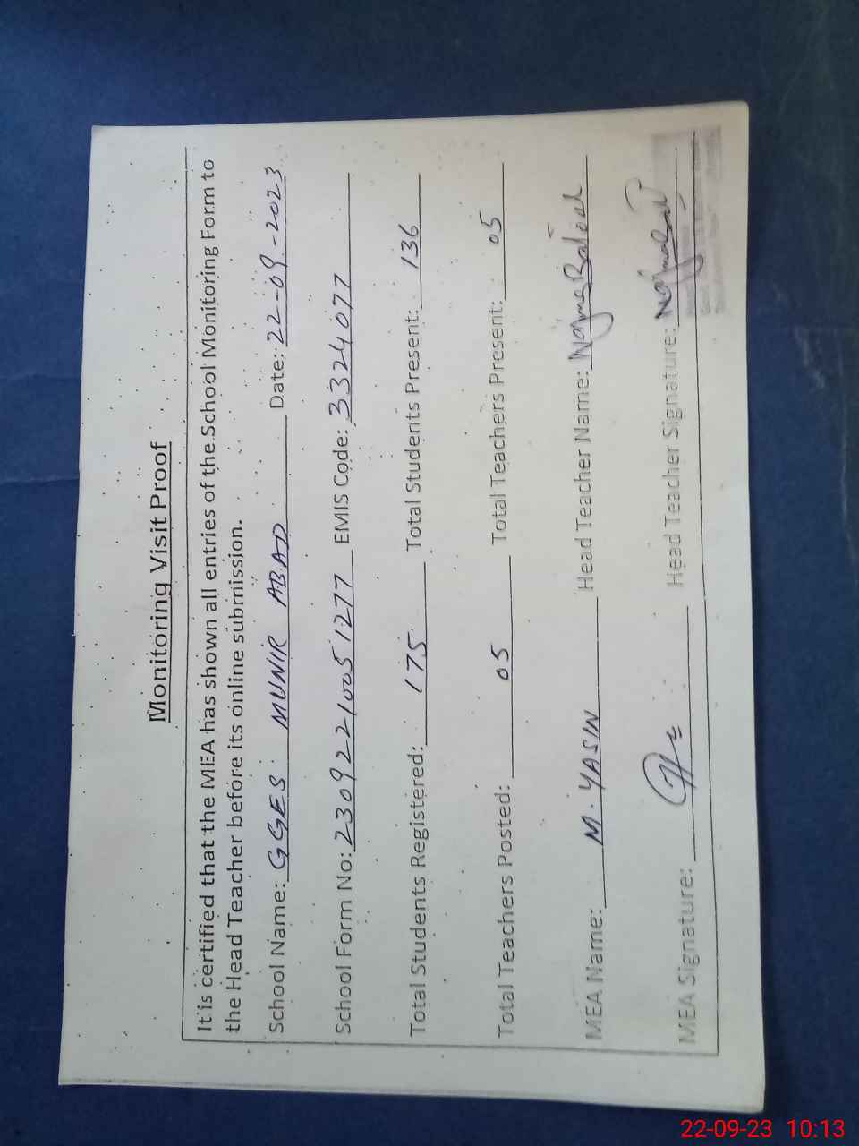 | EMIS Code: 33240077 | Name of School: GGES MUNIR ABAD | |||