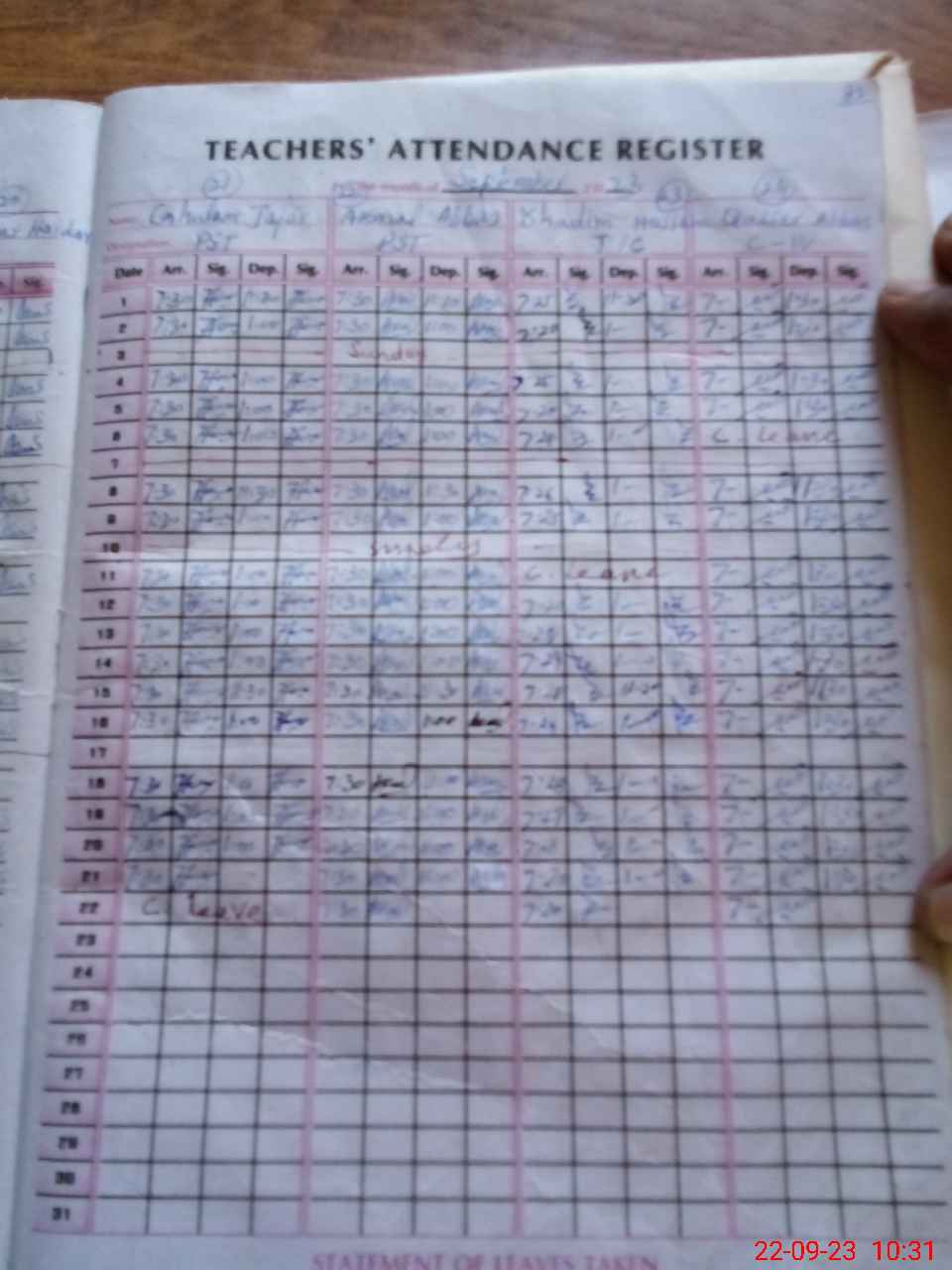 | Leave | Duty | Absent | Maternity | Medical | Ex- Pak |