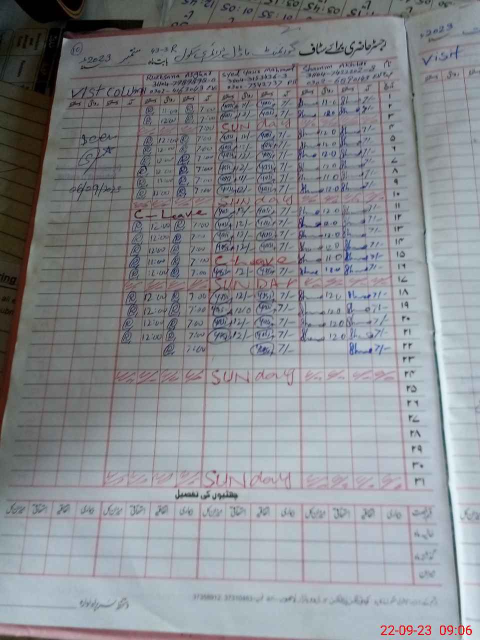 | CNIC | Full Name | Designation | R/C | Absence During Last Calender Month |