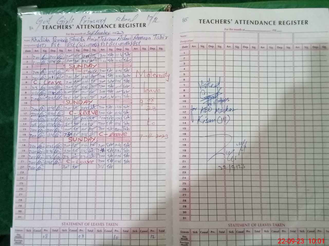 | 42**** | Am**** Ta**** | 1 | 22 | 0 | 0 | 22 | 0 | 0 | 0 | 0 | 0 | Maternity | |