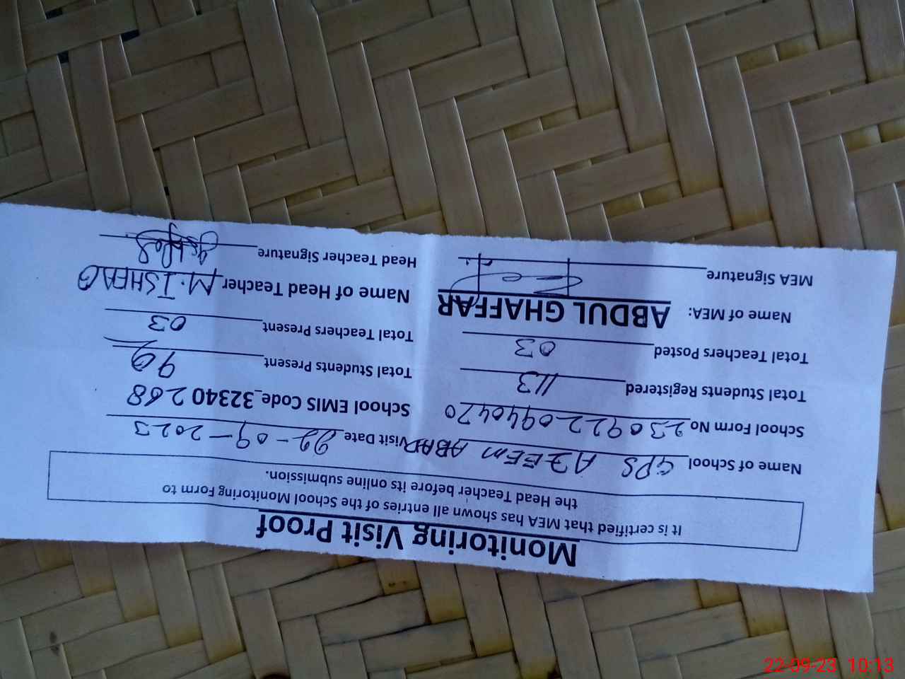| Name: Mu**** is**** Designation: (School Headmaster's/Headmistress's) pst Phone/Cell Number: 03**** |