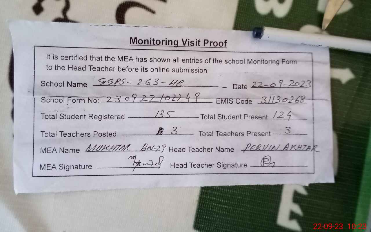 | EMIS Code: 31130268 | Name of School: GGPS CHAK NO. 263 HR | |||