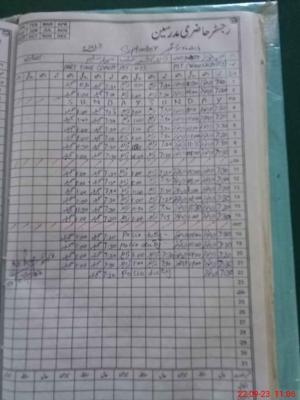 | CNIC | Full Name | Designation | R/C | Absence During Last Calender Month |
