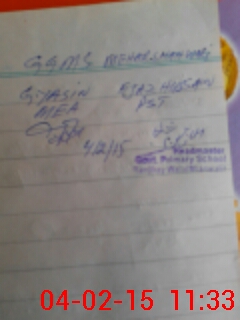 | Attendance Register | Head Teacher | MEA with School | Visit Proof |