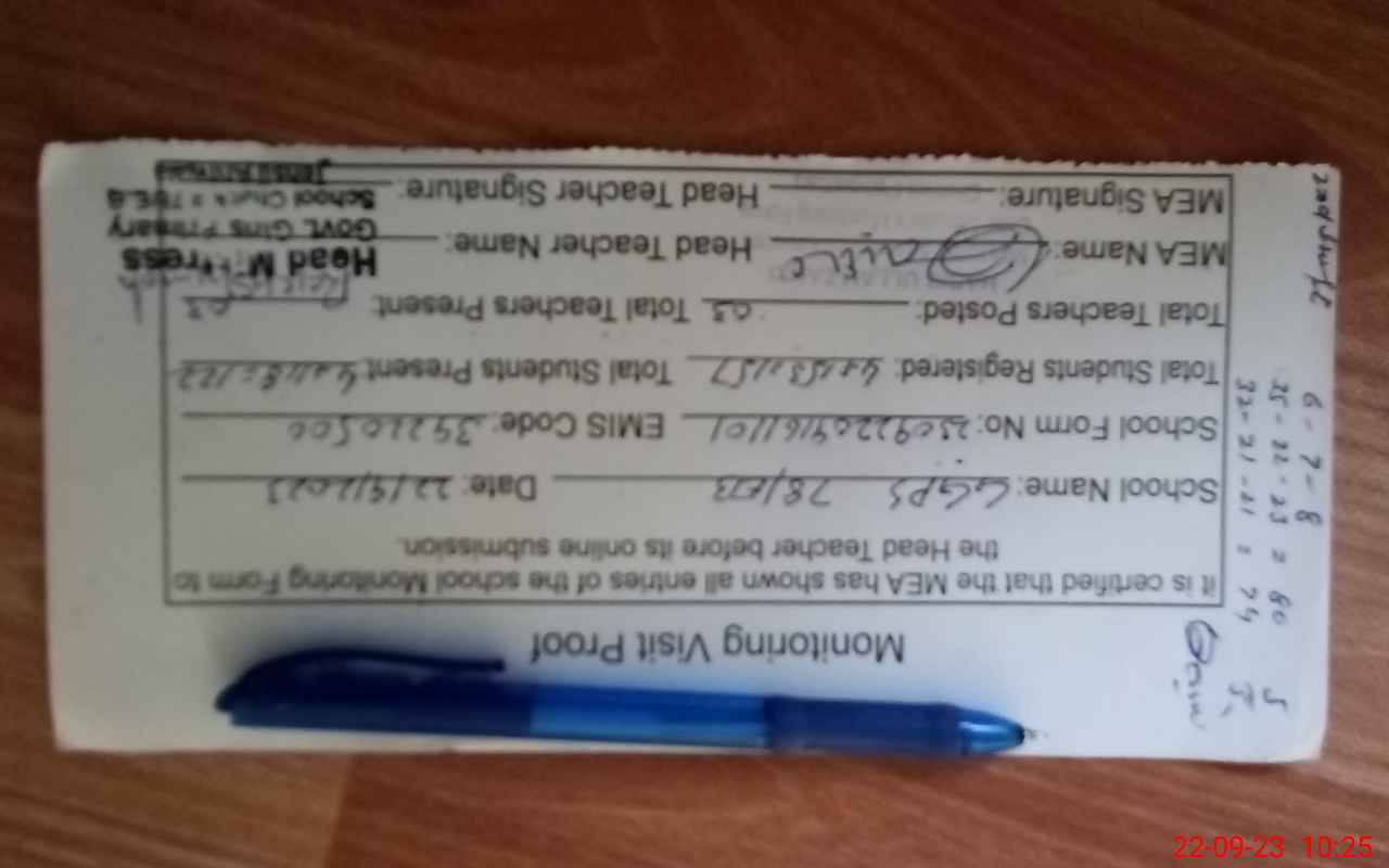 | Attendance Register | Head Teacher | MEA with School | Visit Proof |