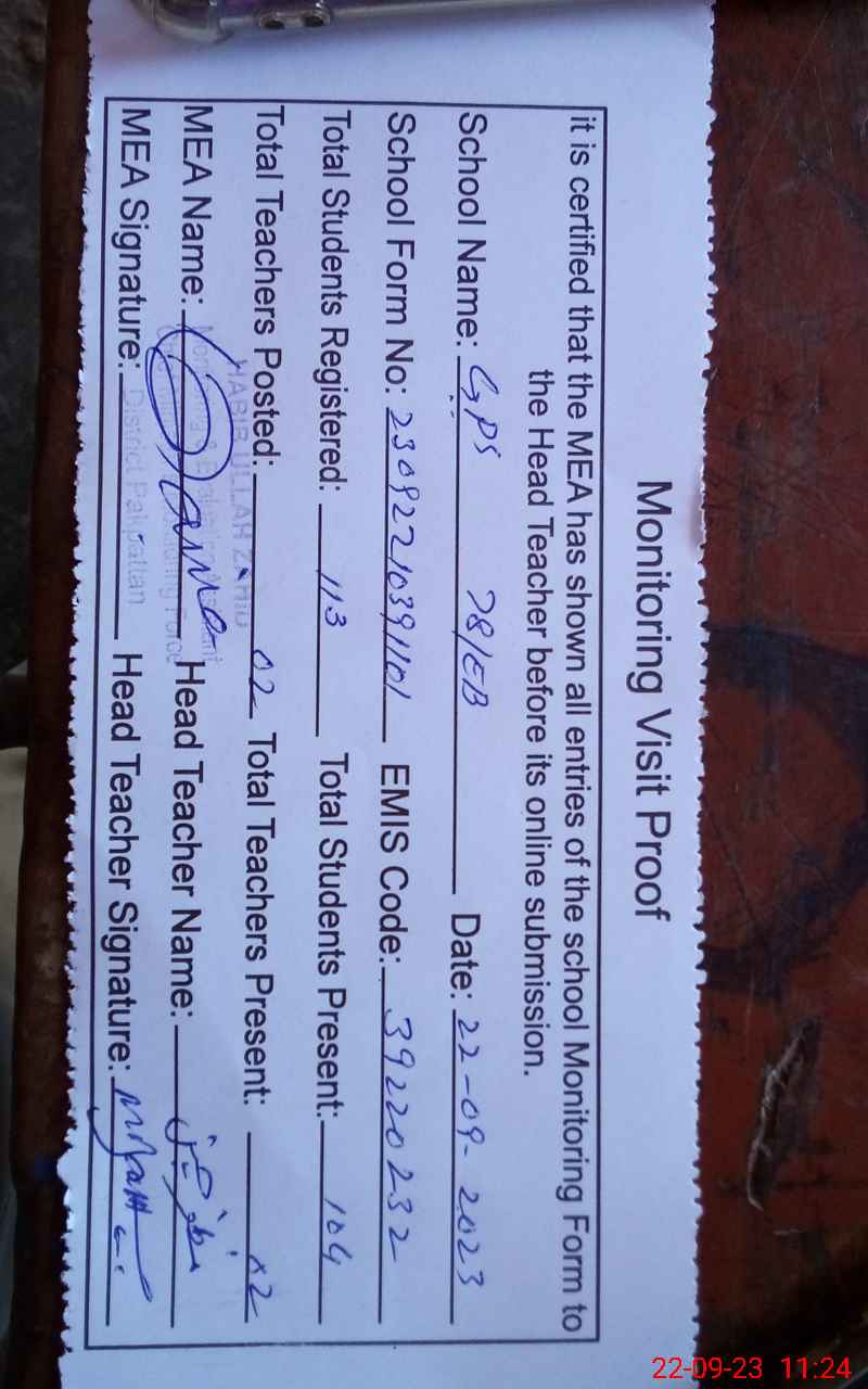 | EMIS Code: 39220232 | Name of School: GPS 78 EB ARIF WALA | |||