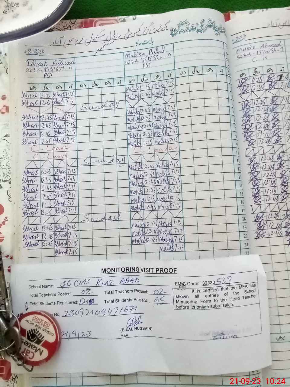| Attendance Register | Head Teacher | MEA with School | Visit Proof |