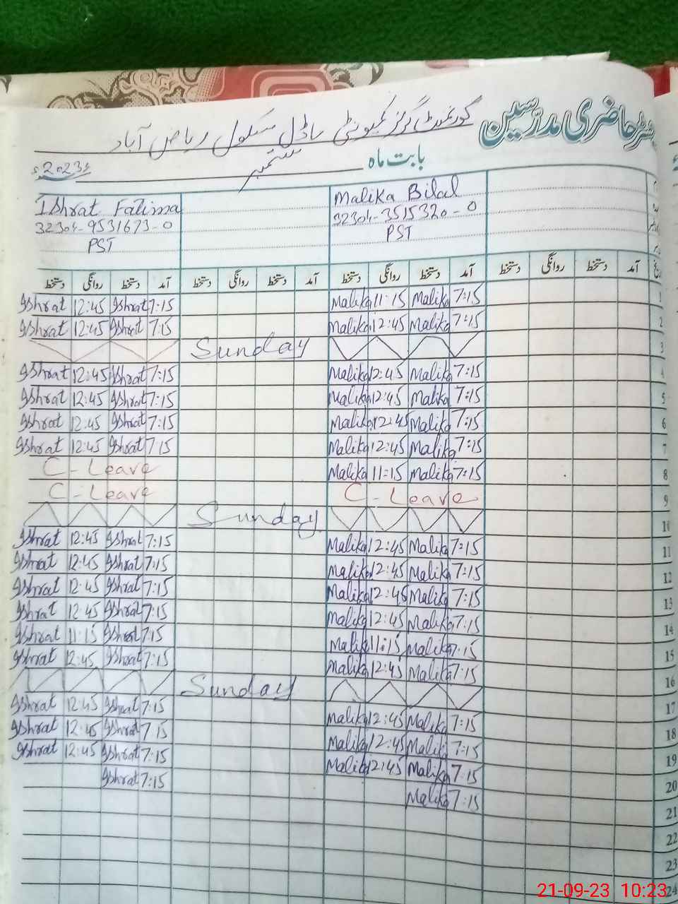 | CNIC | Full Name | Designation | R/C | Absence During Last Calender Month |