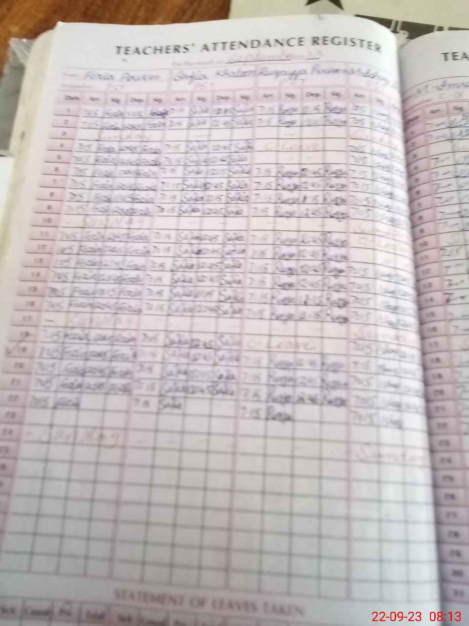 | Remarks (Use Separate Page if Required): NSB record not maintained of August 2023 Portions water pump stolen in summer vacations now there is no water in wash room | |||||