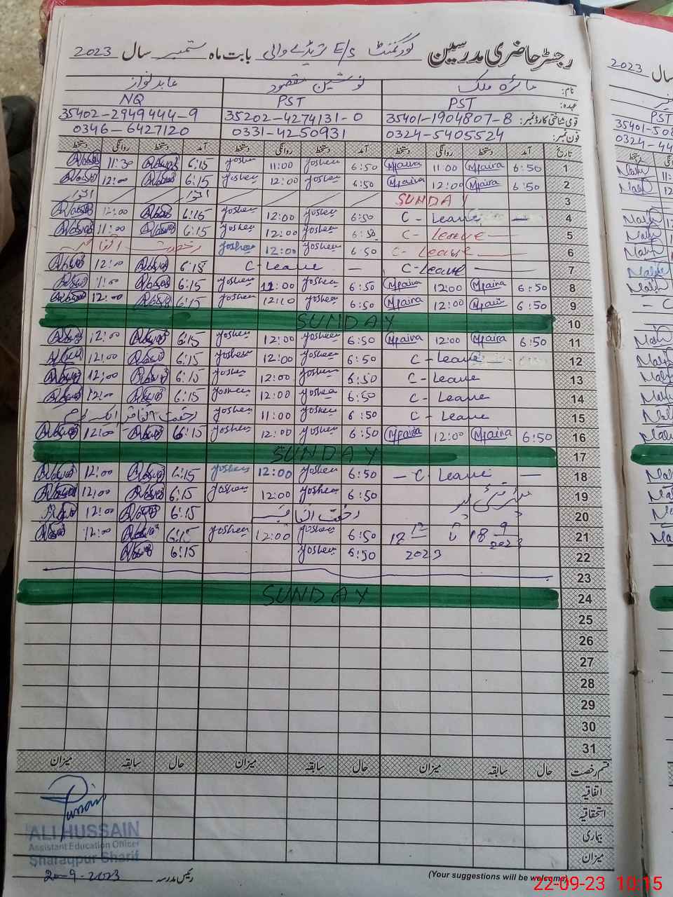 | CNIC | Full Name | Designation | R/C | Absence During Last Calender Month |