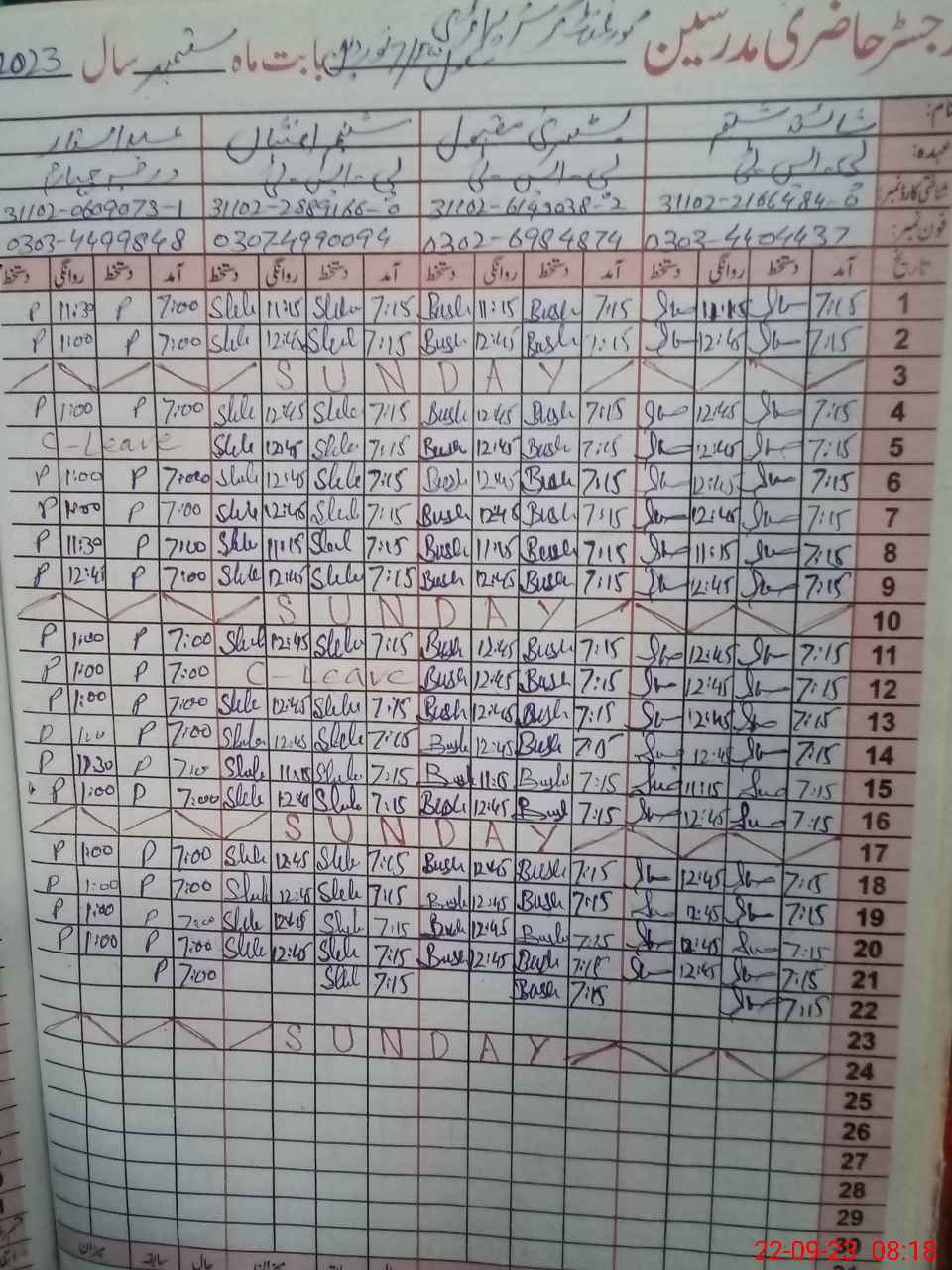 | CNIC | Full Name | Designation | R/C | Absence During Last Calender Month |