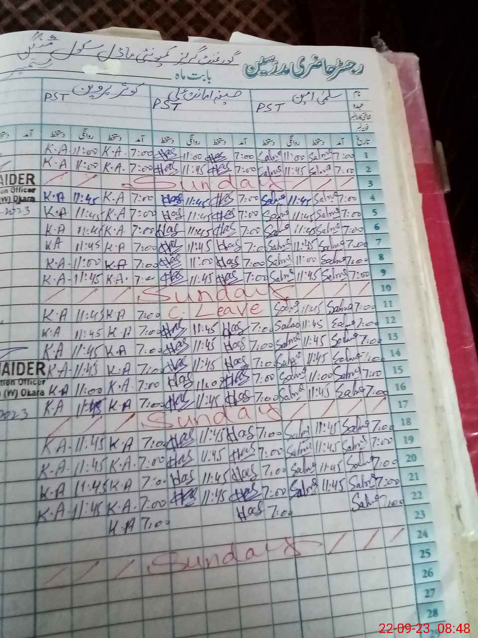 | CNIC | Full Name | Designation | R/C | Absence During Last Calender Month |