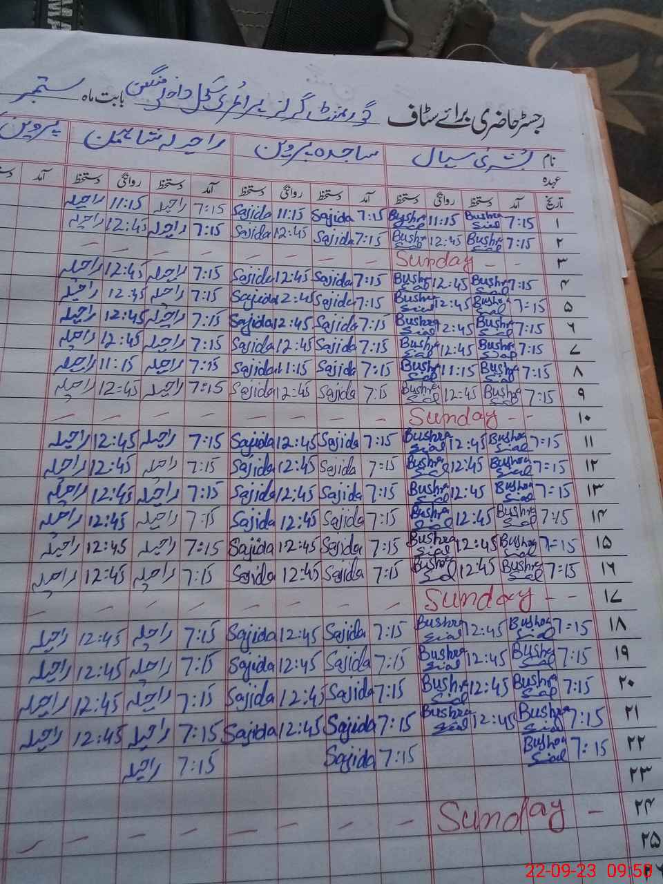| CNIC | Full Name | Designation | R/C | Absence During Last Calender Month |