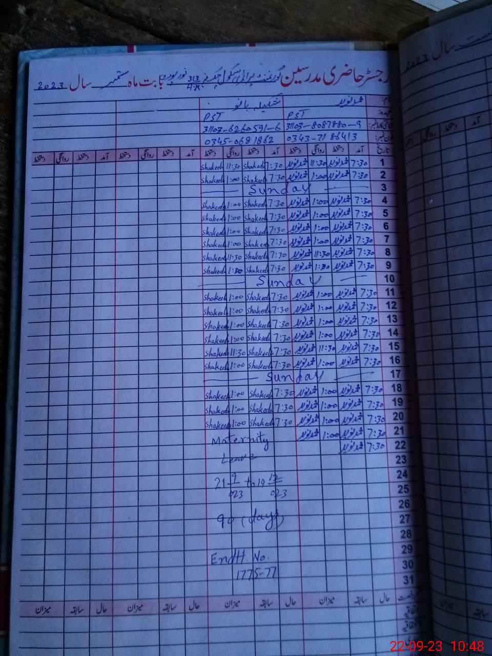 | Name: Sh**** Designation: (School Headmaster's/Headmistress's) PST Phone/Cell Number: 03**** |