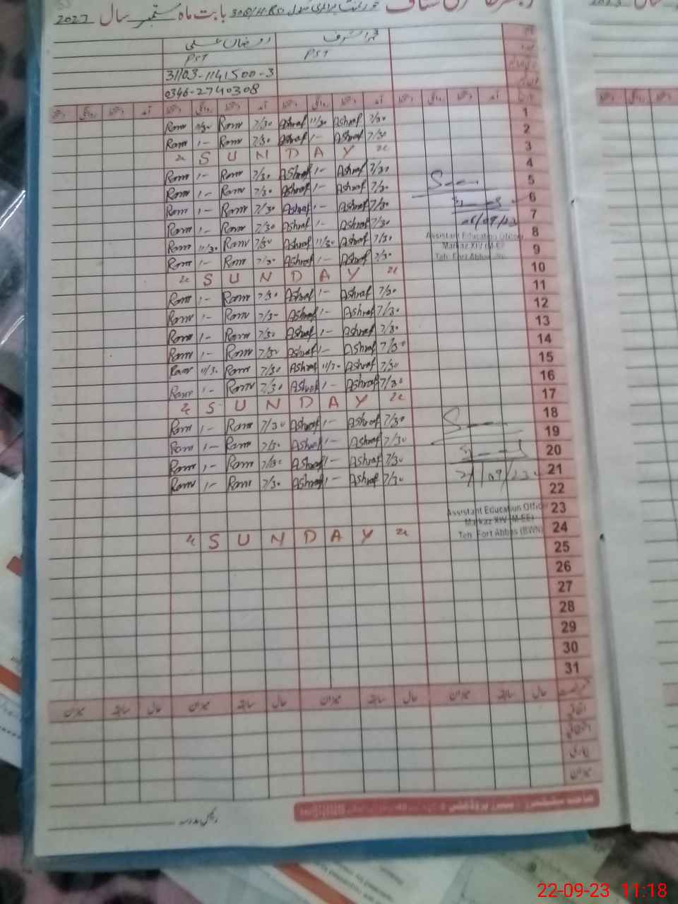| Name: Ha**** Al**** Designation: (School Headmaster's/Headmistress's) PST Phone/Cell Number: 03**** |