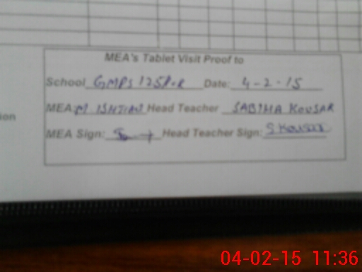 | Attendance Register | Head Teacher | MEA with School | Visit Proof |