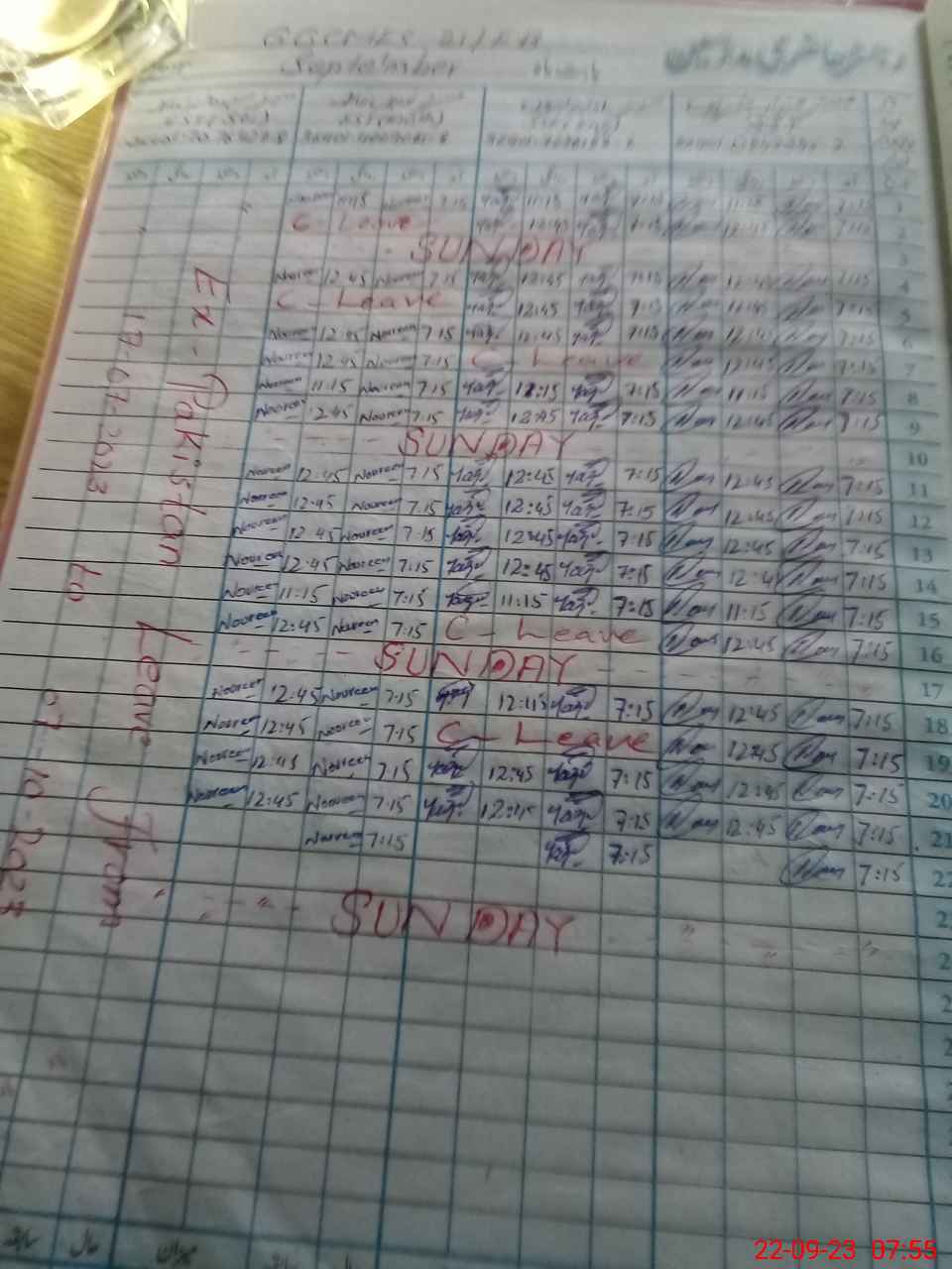 | Leave | Duty | Absent | Maternity | Medical | Ex- Pak |