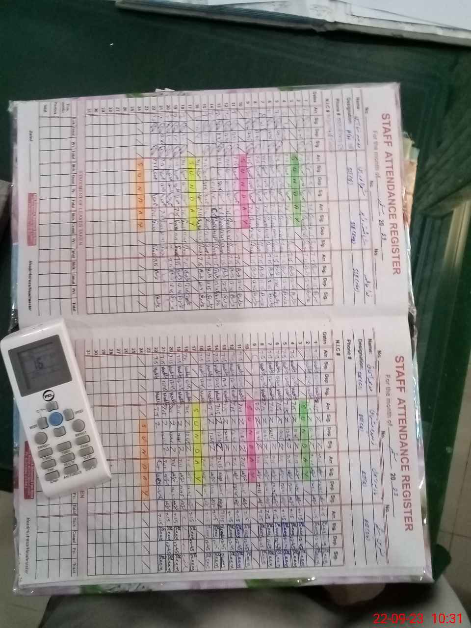 | CNIC | Full Name | Designation | R/C | Absence During Last Calender Month |