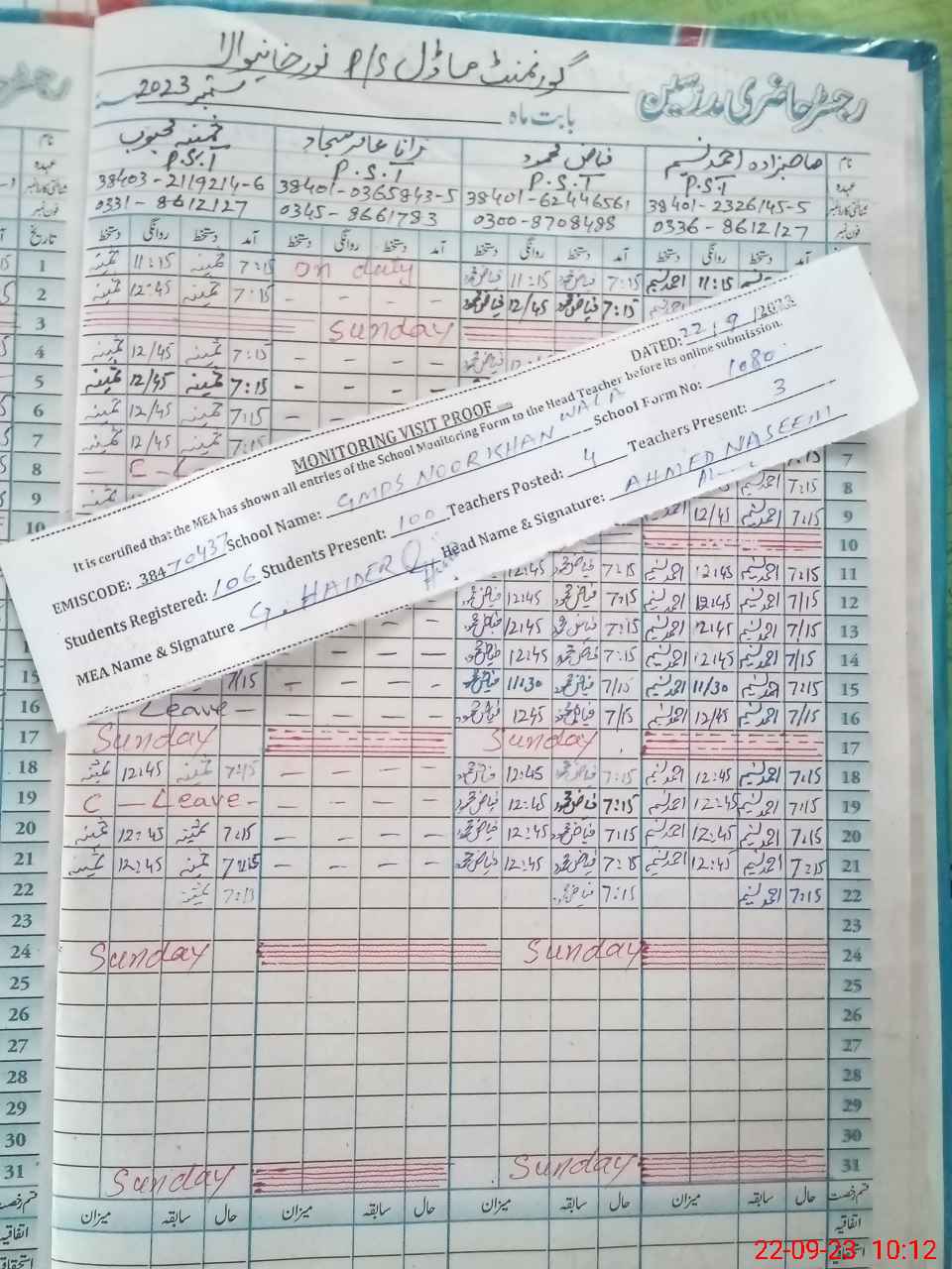 | Name: AH**** NA**** Designation: (School Headmaster's/Headmistress's) PST Phone/Cell Number: 03**** |