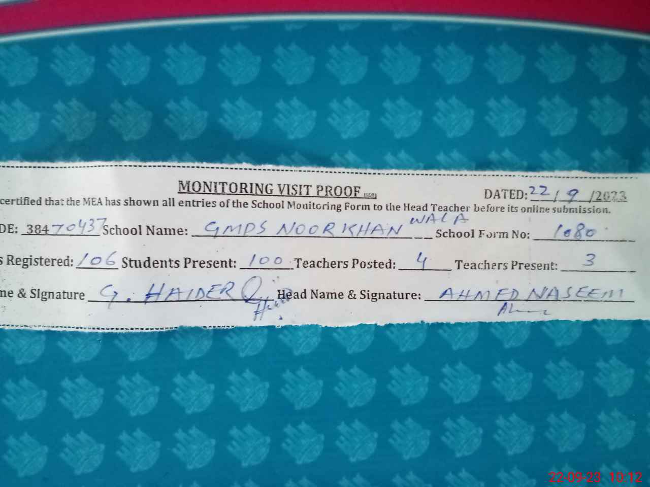 | EMIS Code: 38470437 | Name of School: GMPS NOOR KHAN-E-WALA | |||