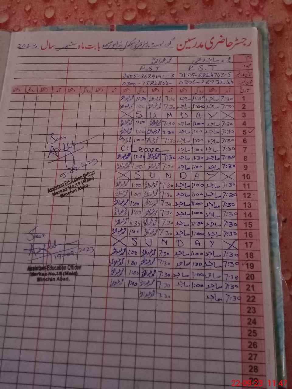 | Name: Mu**** Sa**** Al**** Designation: (School Headmaster's/Headmistress's) PST Phone/Cell Number: 03**** |