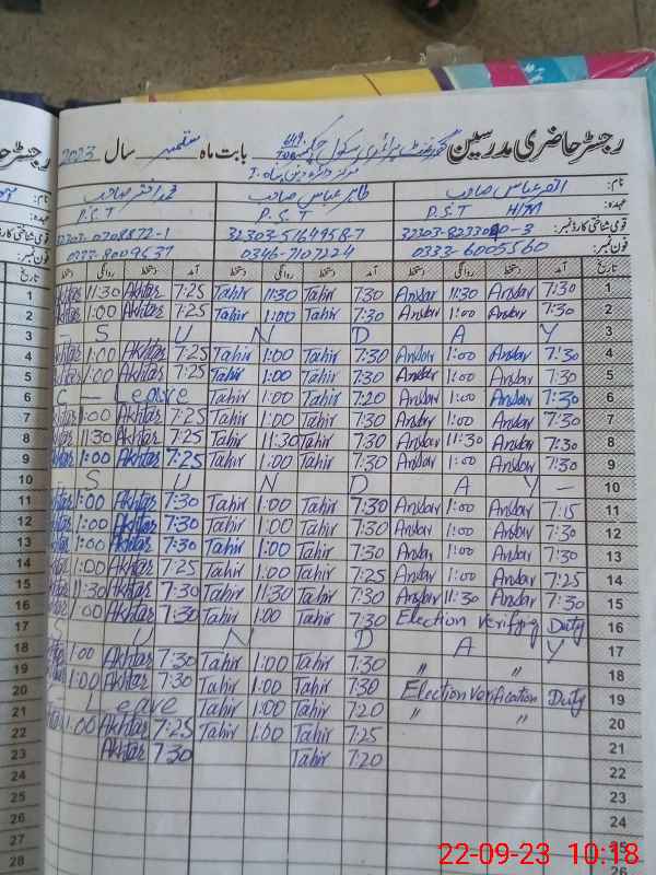 | Name: AN**** AB**** Designation: (School Headmaster's/Headmistress's) ESE Phone/Cell Number: 03**** |