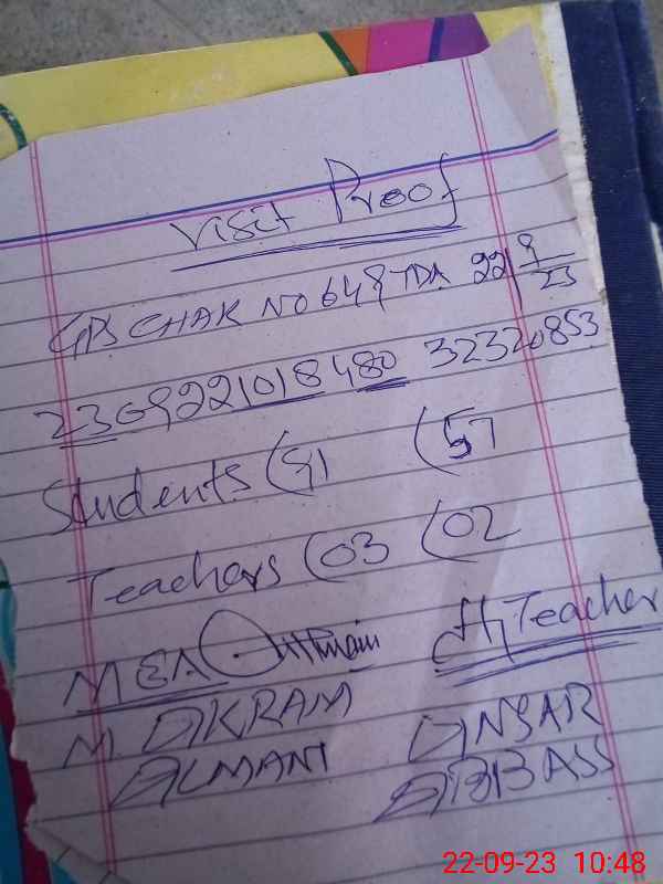 | EMIS Code: 32320853 | Name of School: GPS CHAK NO. 649/TDA | |||