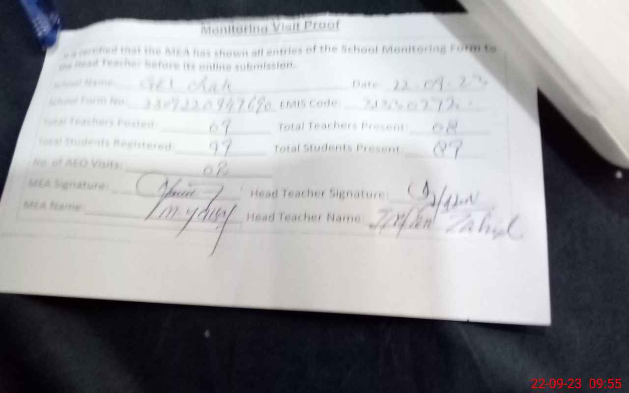 | EMIS Code: 31330272 | Name of School: GES CHAK 106/P | |||