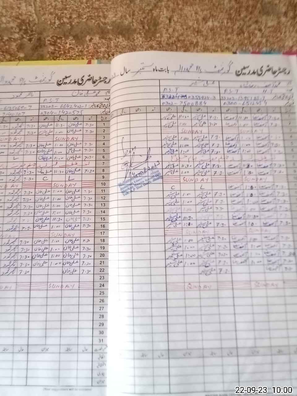 | Name: MAS**** RA**** Designation: (School Headmaster's/Headmistress's) PST Phone/Cell Number: 03**** |