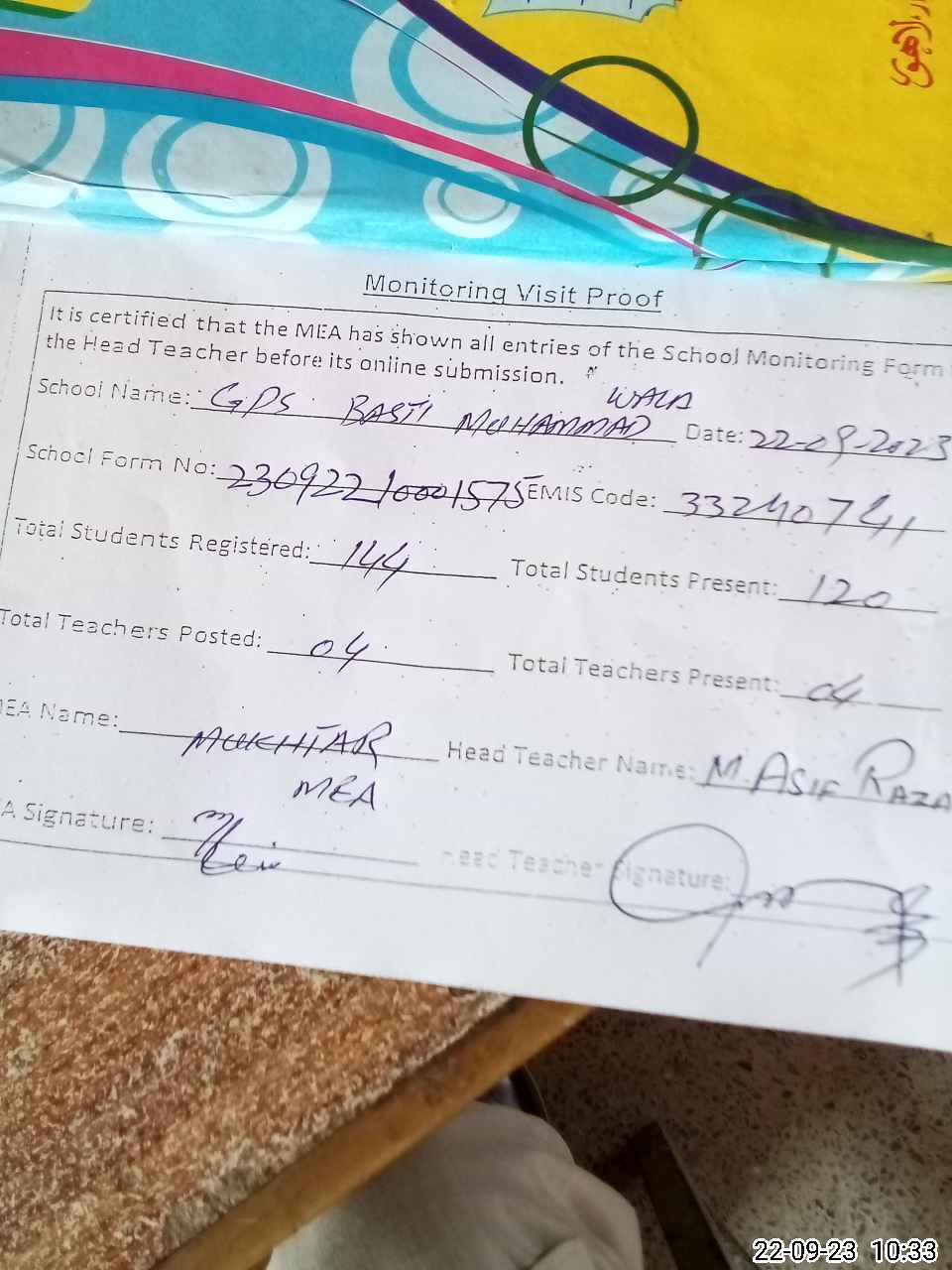 | EMIS Code: 33240741 | Name of School: GPS BASTI MOHAMMAD WALA | |||