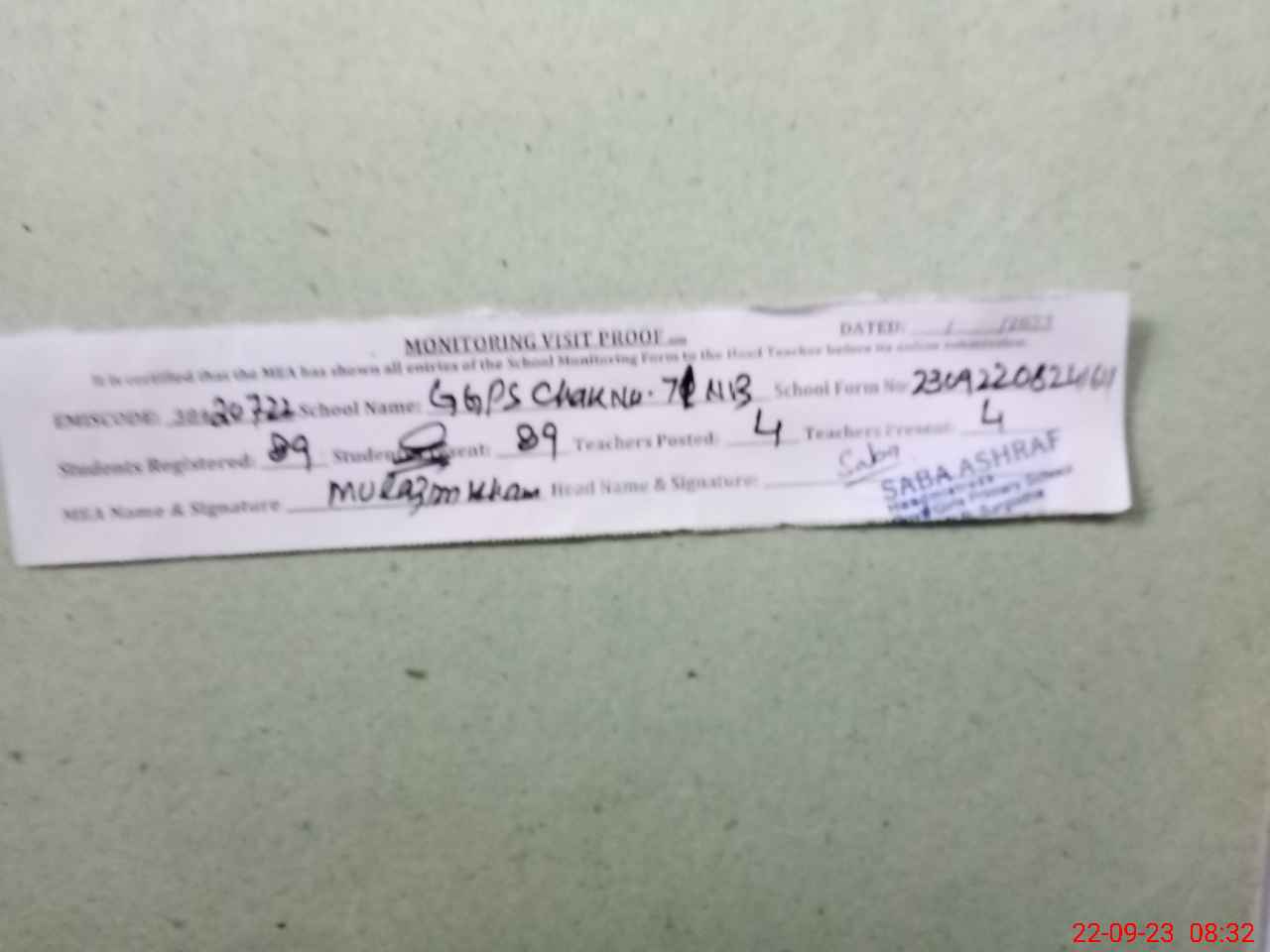 | EMIS Code: 38420722 | Name of School: GGPS CHAK NO.71 NB | |||