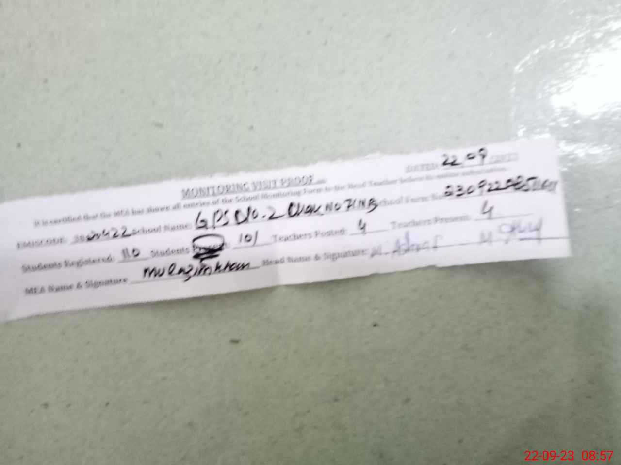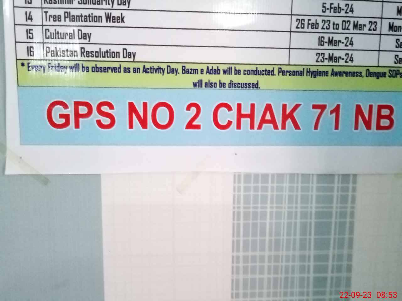 | EMIS Code: 38420422 | Name of School: GPS NO.2 CHAK NO.71 NB | |||