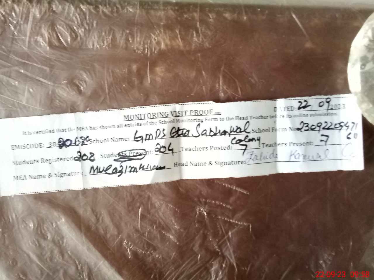 | EMIS Code: 38420680 | Name of School: GMPS SABARWAL COLONY | |||
