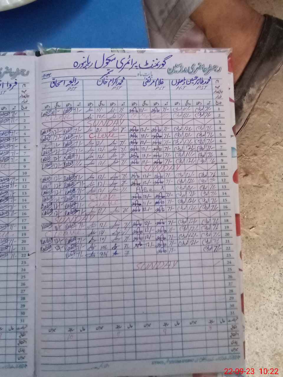 | CNIC | Full Name | Designation | R/C | Absence During Last Calender Month |