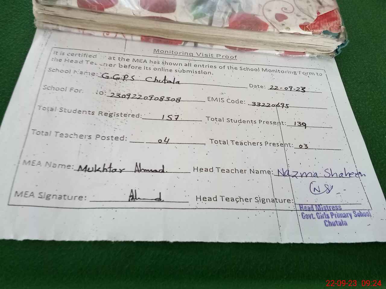 | EMIS Code: 33220695 | Name of School: GGPS CHUTALA | |||