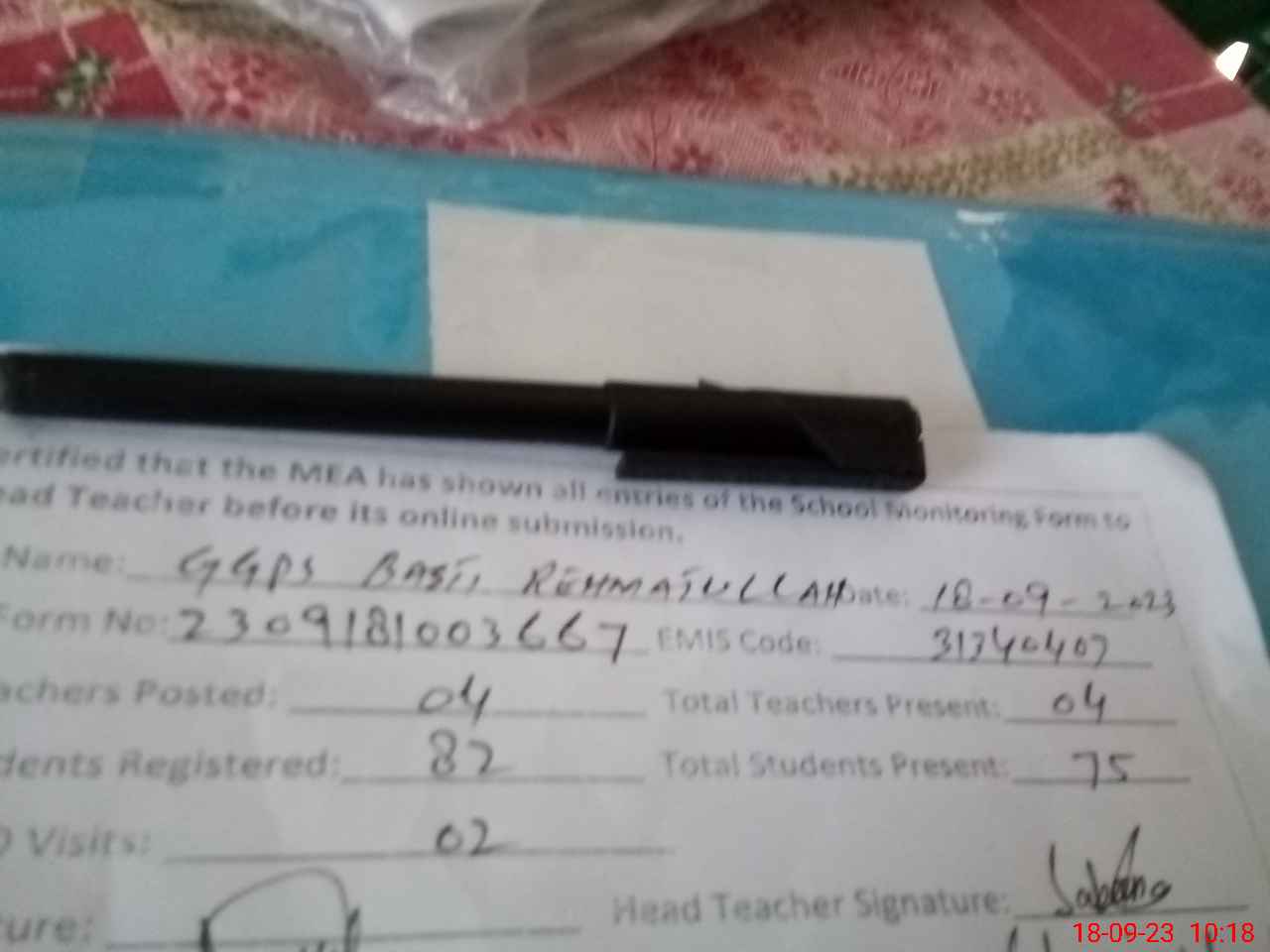 | Attendance Register | Head Teacher | MEA with School | Visit Proof |