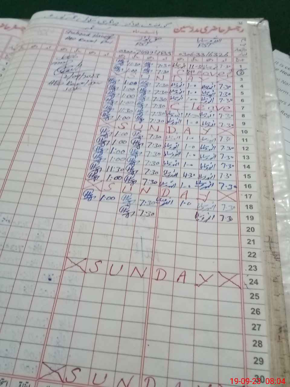 | Leave | Duty | Absent | Maternity | Medical | Ex- Pak |