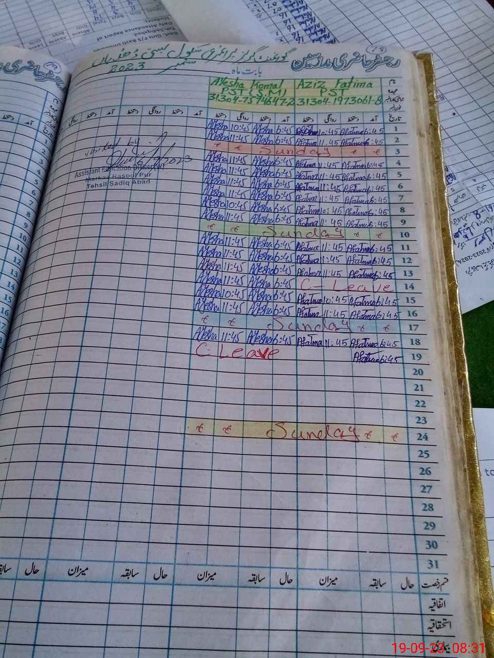 | Name: AZ**** FA**** Designation: (School Headmaster's/Headmistress's) PST Phone/Cell Number: 03**** |