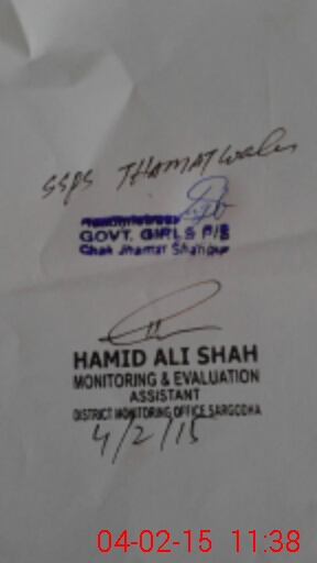 | District: SARGODHA | Tehsil: SHAHPUR | Markaz: SHAHPUR - FEMALE | Level: Primary | |