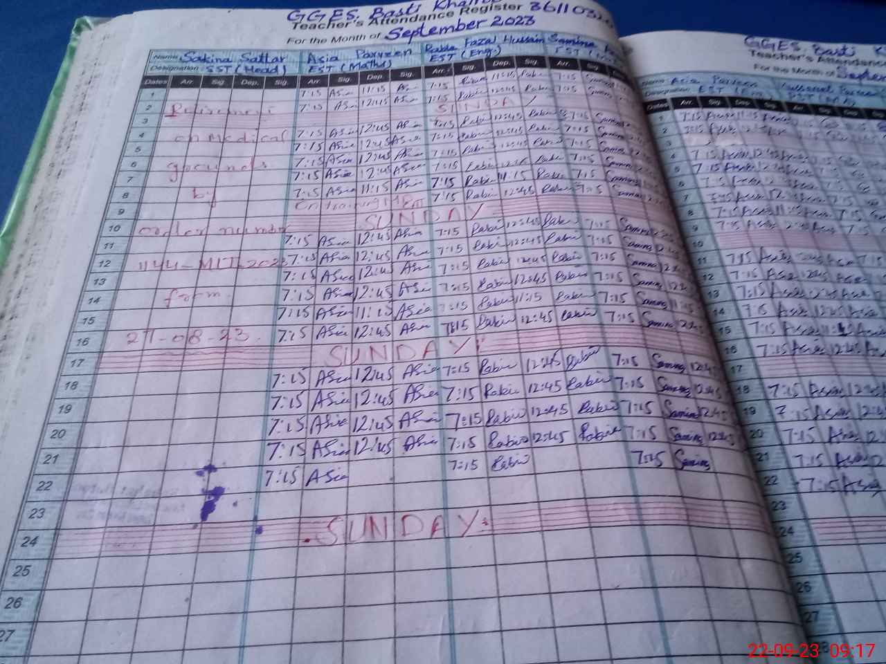 | No. of Students Present - Female | 9 | 0 | 22 | 19 | 24 | 16 | 16 | 22 | 23 | 10 | 13 | 174 | ||||
